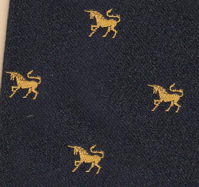 I purchased this necktie recently, and while there is no identifying information, the logo looks like it might represent some company, such as a bank. Any idea what it might be? |